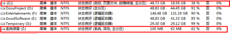 看到没?上图是我的硬盘分区情况,我的win7装在C盘,即我的windows文件夹在C盘,所以C盘是启动分区;但是我把Grub装到Z盘去了,即引导程序Ntldr. boot.ini什么的,所以Z盘是系统分区。。。。。又由于我当前启动的时win7系统,所以win7的系统分区也是活动分区。