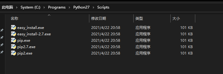 Python 2.7 安装的时候,它会默认选择安装在 C:\Python27\ 而不是 C:\Program Files\Python27\ 。如果我们有强迫症非得安装在 C:\Program Files\Python27\ 目录下,会因为权限问题导致 Scripts 目录丢失从而导致 pip.exe 和 easy_install.exe 安装失败。