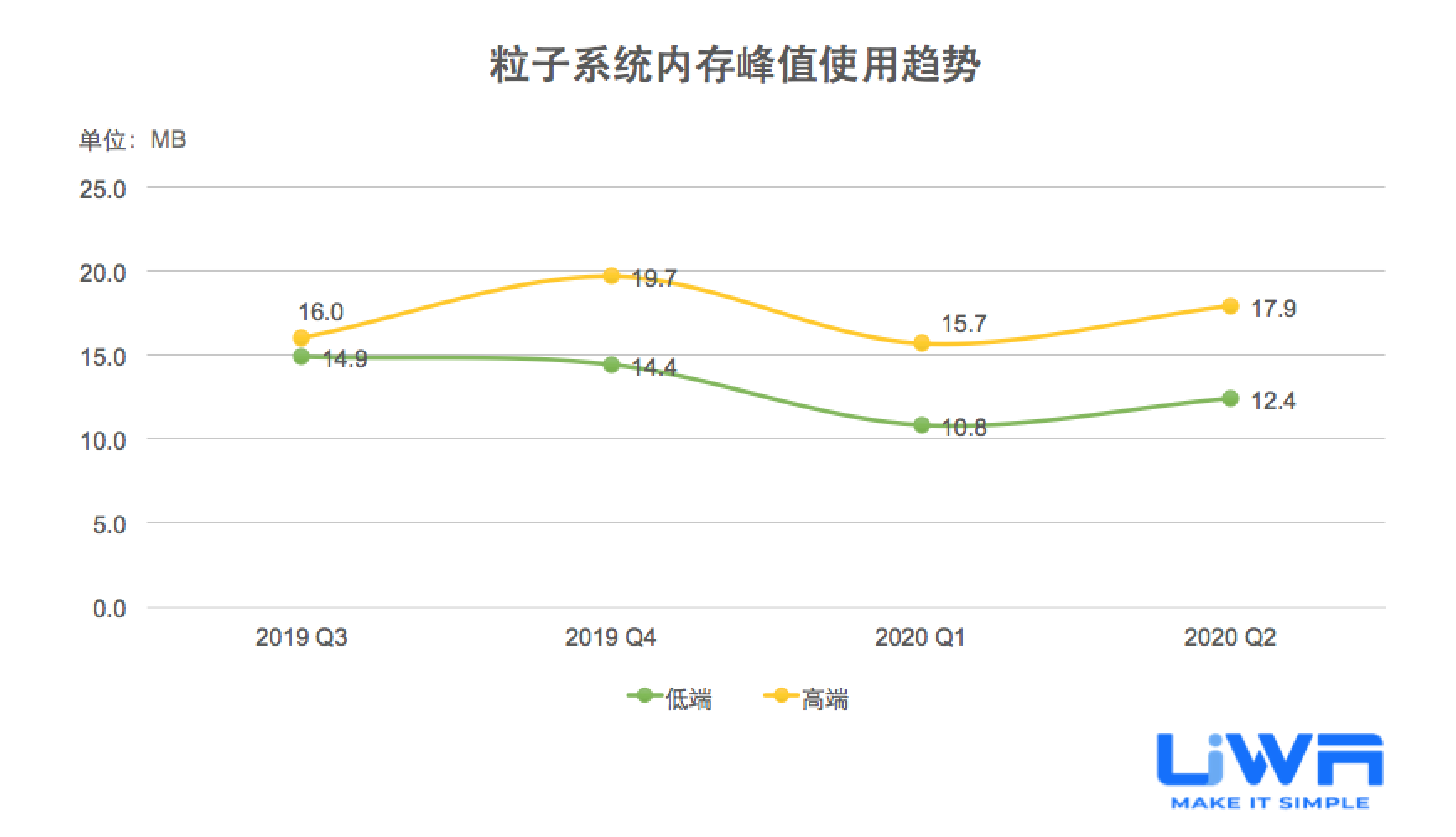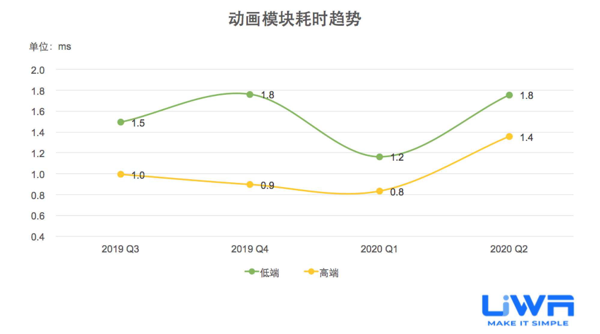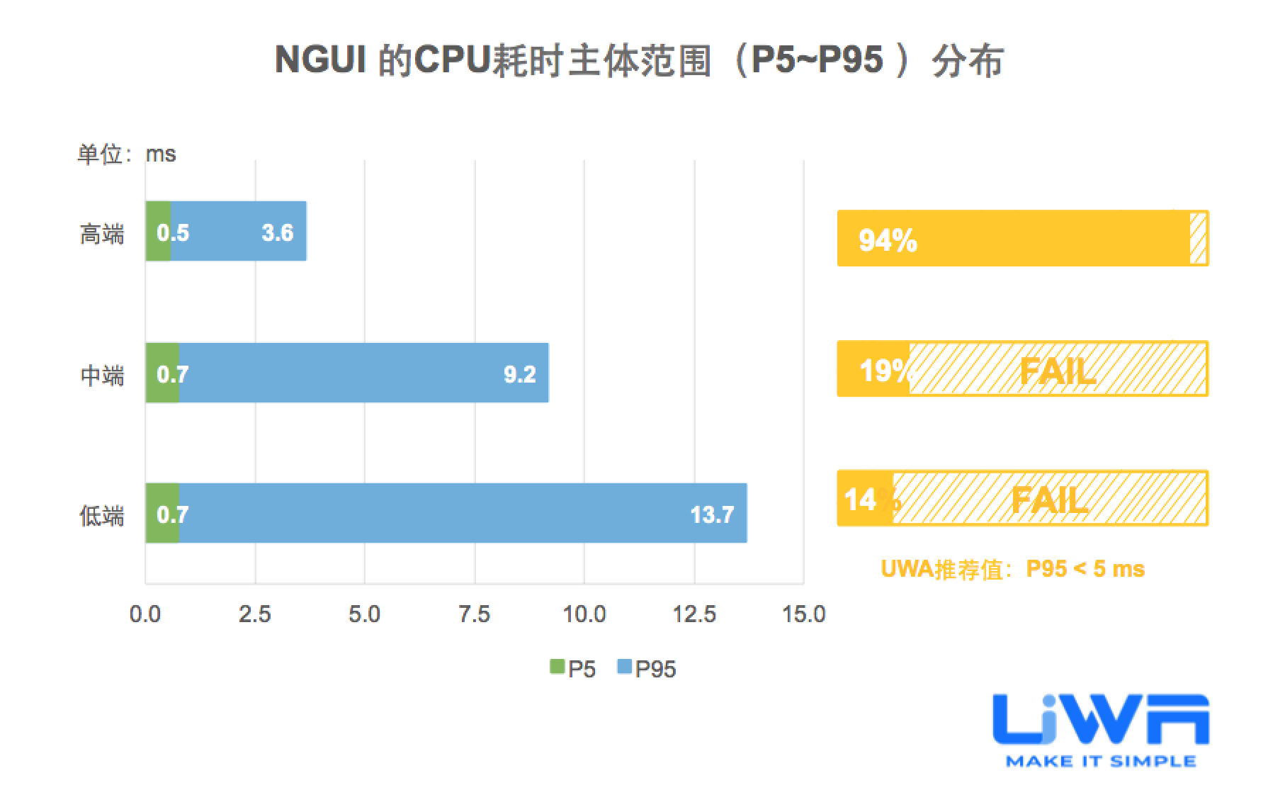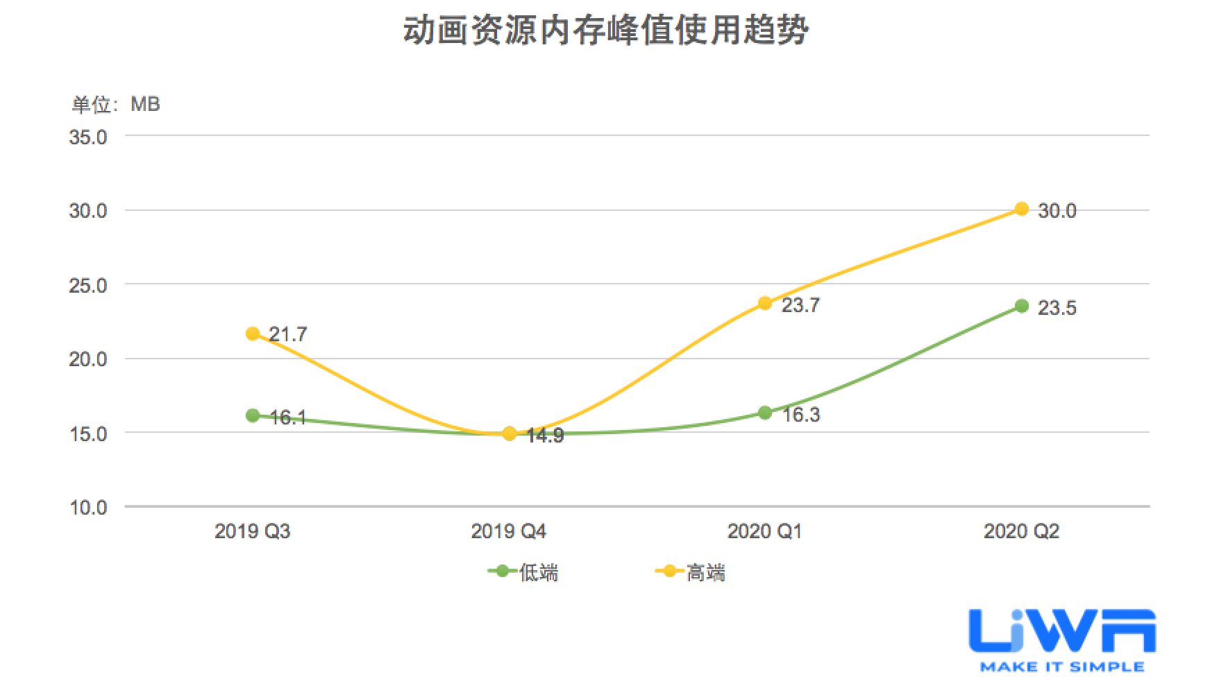 按照UWA官网(www.uwa4d.com)的测评机型分类,我们将统计的性能数据分为低端、中端和高端;在趋势图中则直接以最具有代表性的低端和高端来展现。