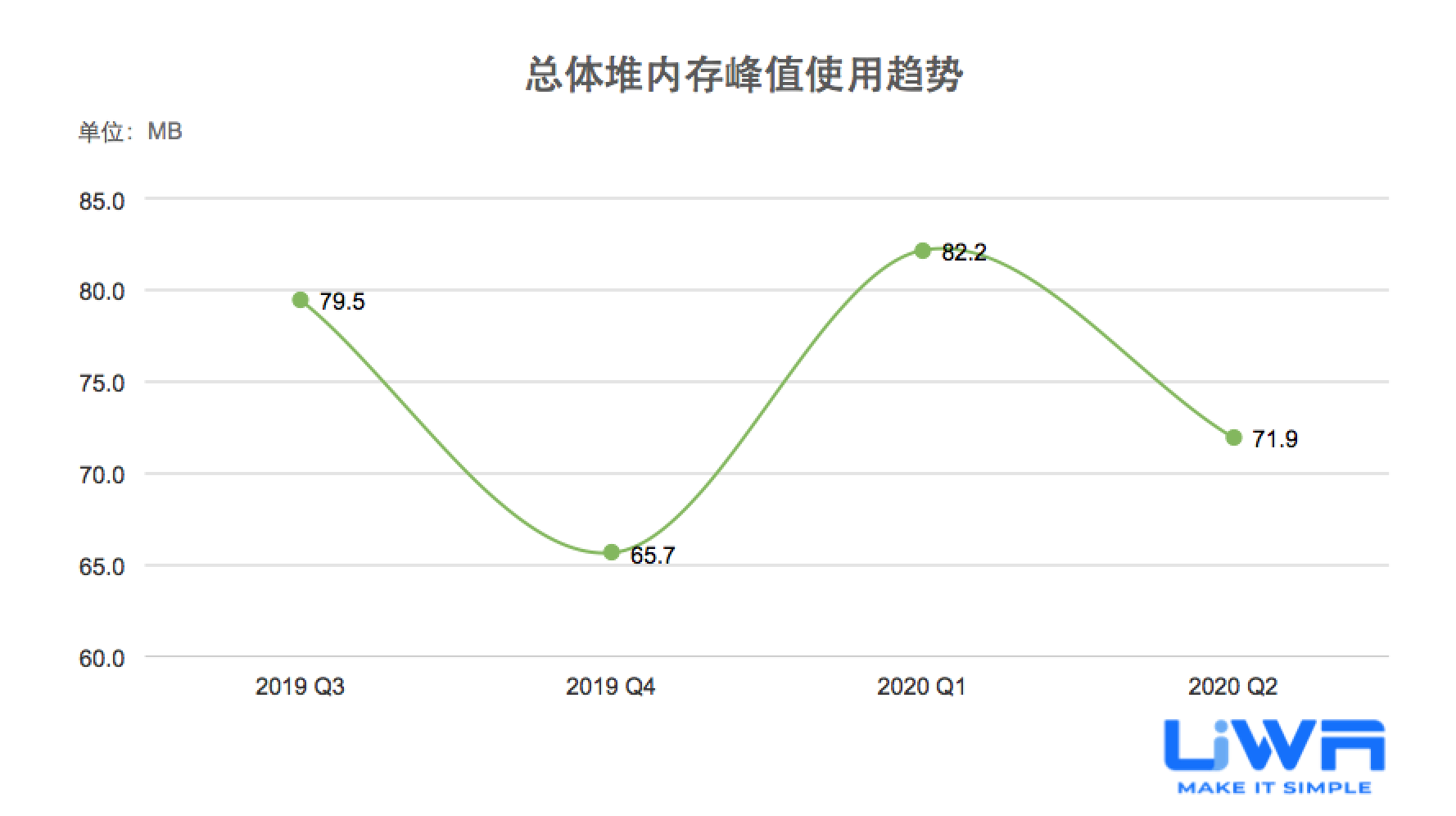 总体堆内存在最近一年里在70-80MB震荡。