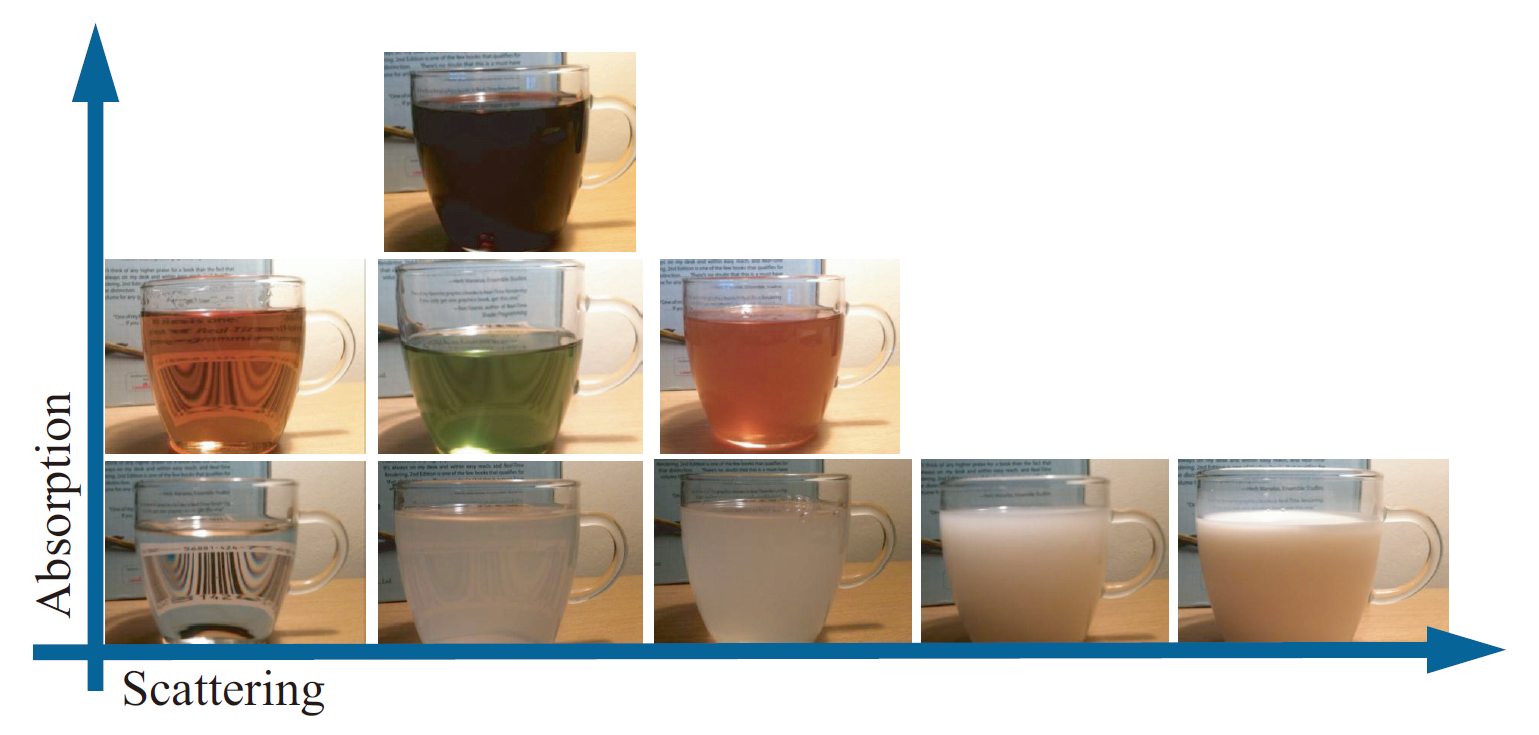 而每种介质的外观是散射和吸收两种现象的综合结果: