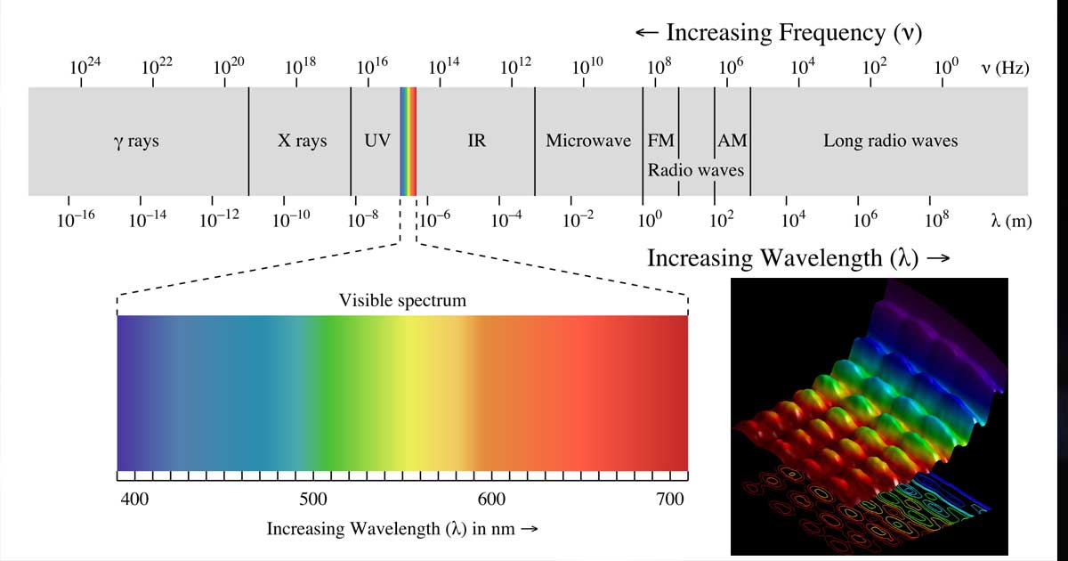 图 电磁波谱。可见光仅覆盖完整电磁波谱在400nm和700nm之间非常有限的光谱区间