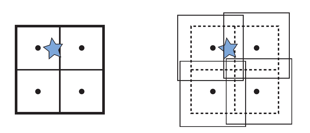 空间数据结构的组织通常是层次结构的。宽泛地说,即最顶层包含它之下的层次,后者又包含更下层的层次,以此类推。因此,这种结构具有嵌套和递归的特点。用层次结构的实现方式对访问速度的提升很有帮助,复杂度可以从O(n)提升到O(log