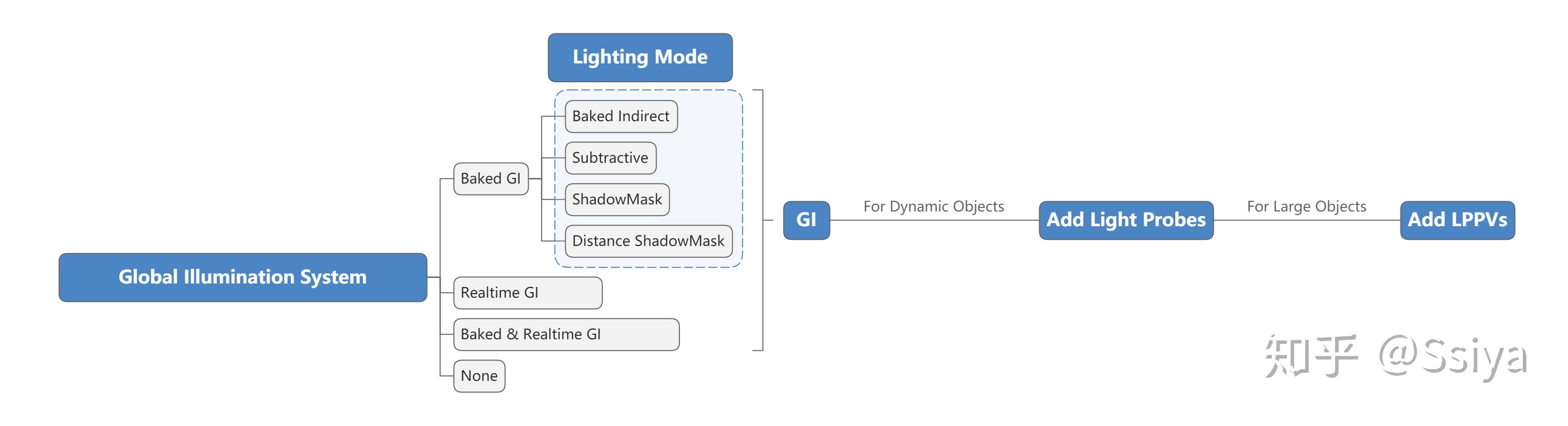 理论上反射、折射、阴影也属于全局光照的范畴,所以全局光照还包含了环境光(Skybox)、Reflection、Shadow、AO等光照信息。