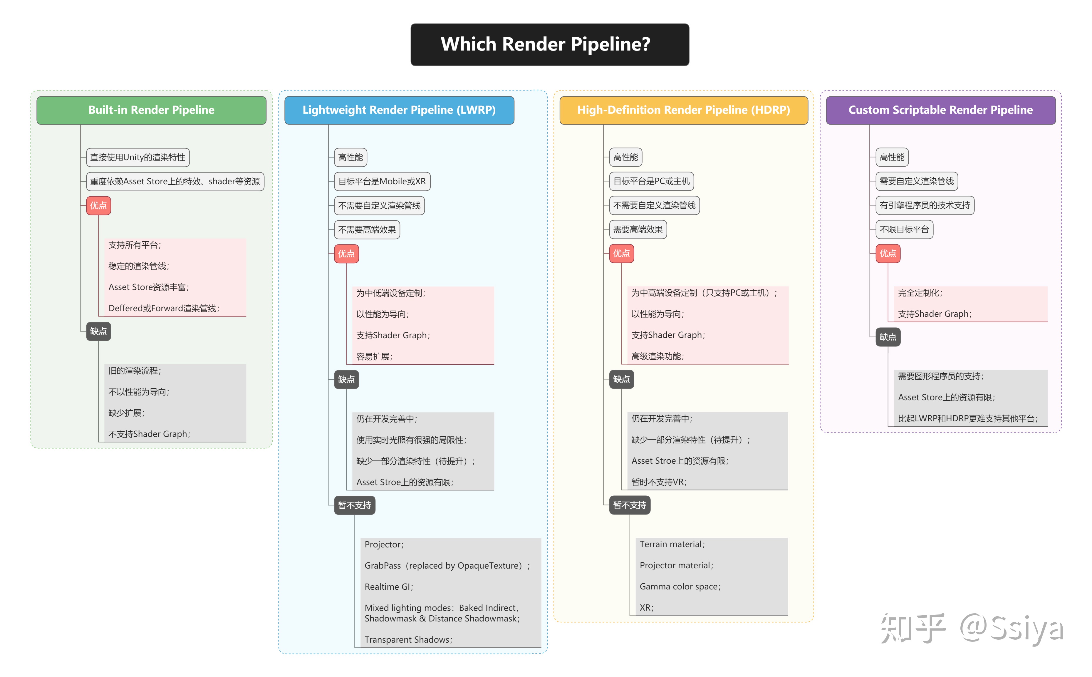 Unity项目怎样选择Render Pipeline?这应该是首先要考虑的问题,但是在此之前要对Unity的光照系统有基本的了解,所以Unity Render Pipeline这一节放在了文章的最后。