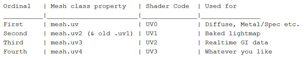 本文参考:https://forum.unity.com/threads/important-information-regarding-mesh-uv-channels.370746/