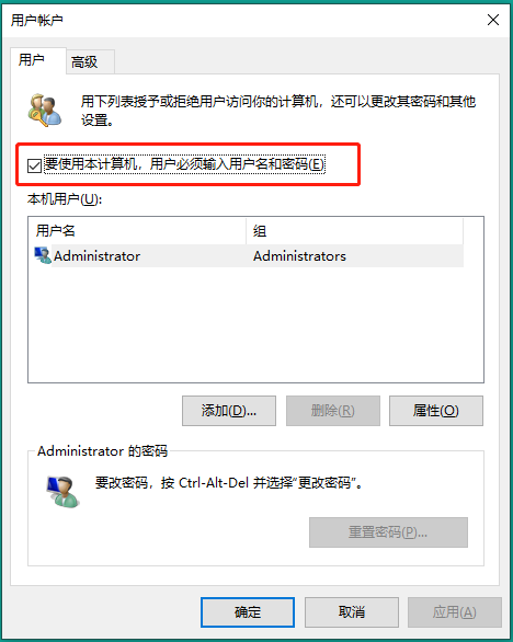 Win10 没有“要使用本计算机,用户必须输入用户名和密码(E)”选项